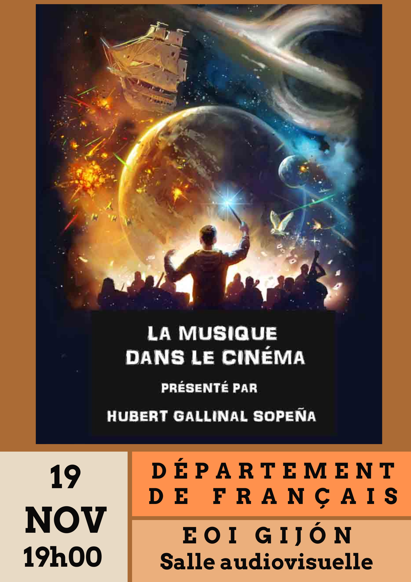 La Escuela Oficial de Idiomas de Gijón a le plaisir de proposer une conférence intitulée « La Musique dans le Cinéma », animée par Hubert Gallinal. Cette rencontre permettra d’explorer le rôle fondamental de la musique dans le septième art, son influence sur les émotions,…